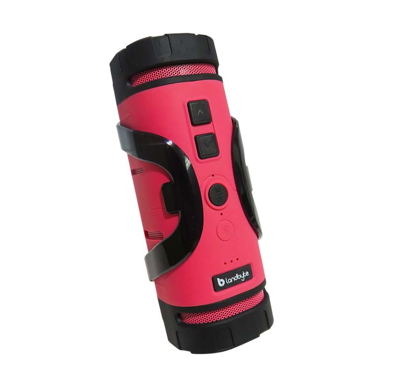 Parlante inalámbrico Landbyte LB350, Bluetooth, lector USB/SD, llamadas manos libres, soporte para bicicletas, fucsia